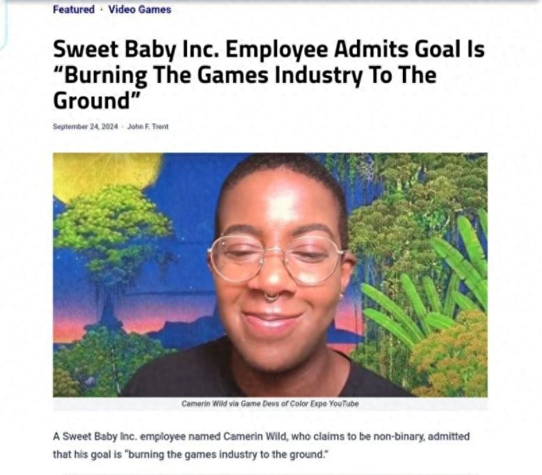 甚至Sweetbaby性别不明的员工装都不装了,直接发表文章表示:我们的目标是彻底摧毁游戏行业