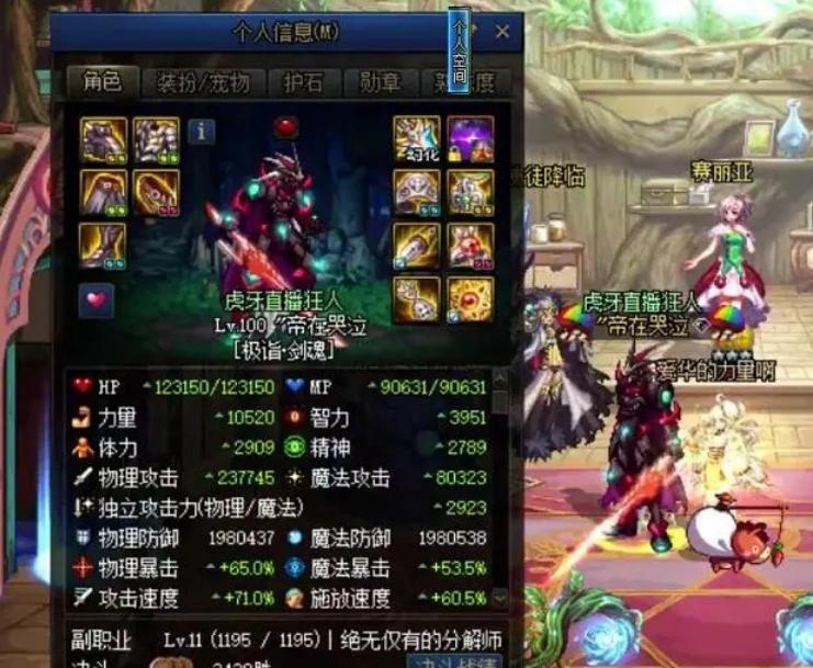 狂人有着国服第一剑魂的称号,要知道能够冲上国服第一并且蝉联几年的时间,氪金肯定是非常多的。在前年的一次增幅活动当中,全身增幅16外加一件增幅17的装备,就让狂人耗资近3000w,而在刚刚过去的春节活动当中,也花费了近300w增幅了一把17的光剑。除此之外,狂人就连魔盒也开了20w个。这还不算什么,狂人不仅有着国服第一剑魂,还有国服第一关羽和奶妈(奶妈后期又被超越),再加上其它小号的打造等等,5000w肯定是有的了,毕竟是唯一一个媲美旭旭宝宝的DNF直播。