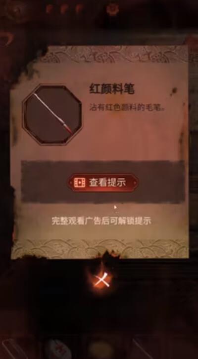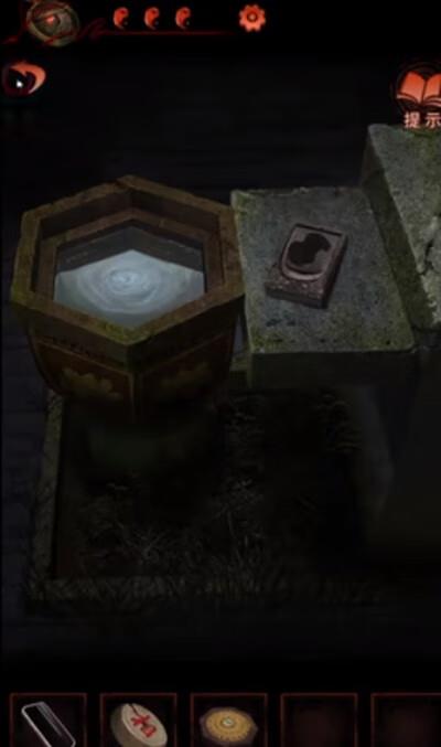 7、在后院石桌的洗墨池处清洗毛笔,去风水室桌上的朱砂水处得到红颜料笔,给纸人画嘴;