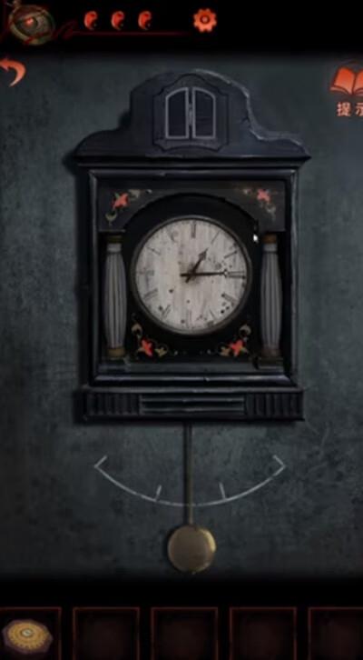 18、根据佛堂桌子暗格里的书的提示,去西洋收藏室解开挂钟机关,获得剪刀。用剪刀剪掉佛龛下的线;