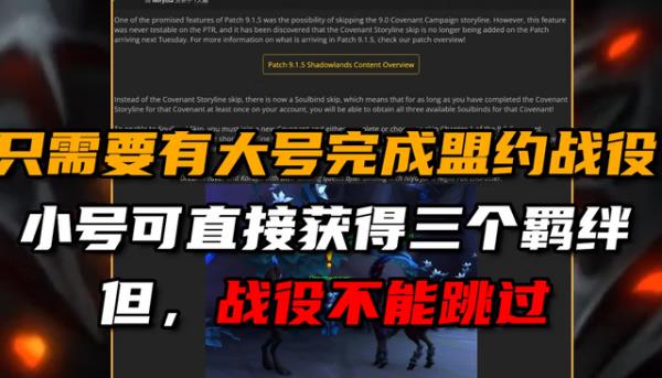 要说魔兽世界玩家们最喜爱的事情莫非就是起小号了,那么魔兽世界9.15怎么跳过盟约战役是很多的玩家比较的感兴趣的,小小编小编就为大家带来了一些相关的信息,感兴趣的小伙伴们快来看看吧。