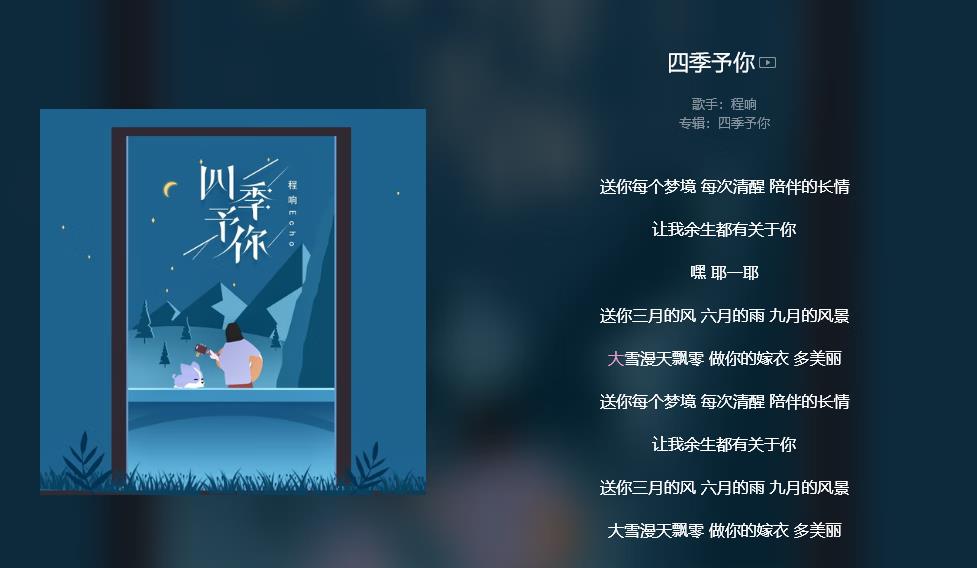 2020年底《抖音》再出神曲,就是这首程响的《四季予你》,句子的旋律中有这句“我愿意为你放弃曾经那些年少轻狂……”,这是高潮部分句子的开启,旋律开始吸引人了,单曲循环真的很不错~