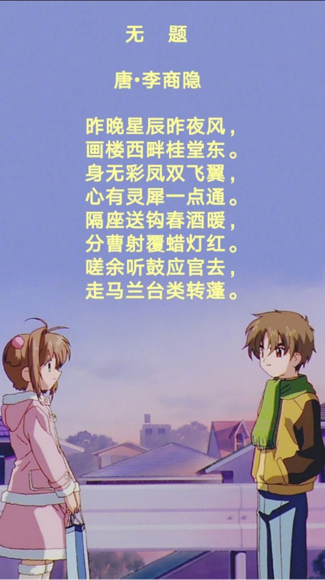 这是晚唐诗人李商隐最脍炙人口的一首情诗。身为唐代最会写情诗的诗人,李商隐的这首诗,写得缠绵悱恻,优美动人。尤其是诗中的“身无彩凤双飞翼,心有灵犀一点通。”更是写出了爱情最美的样子。难怪一位李商隐的超级粉丝说,这是史上最美的情诗,惊艳了千年。