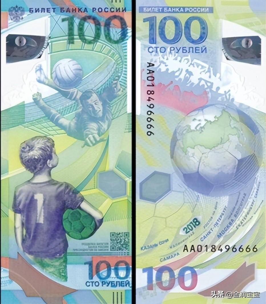 图案:正面为手臂夹着球的足球和扑球的守门员,背面图案突出俄罗斯的足球形状的地球和观赛足球迷。