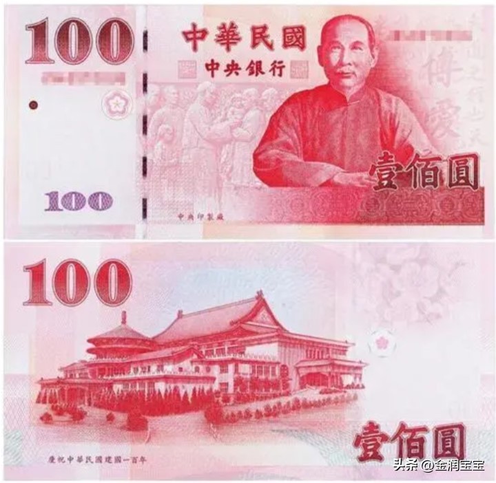 价格:面值为100台币,按照目前新台币对人民币汇率100:22.76,该张纸币的价值为约人民币22.76元。