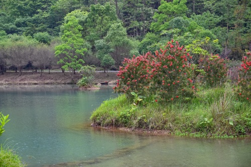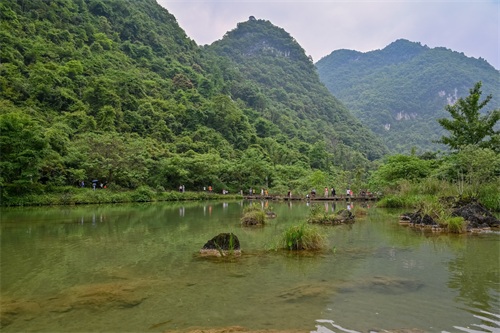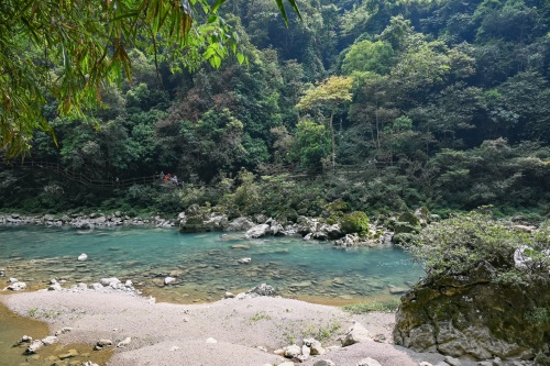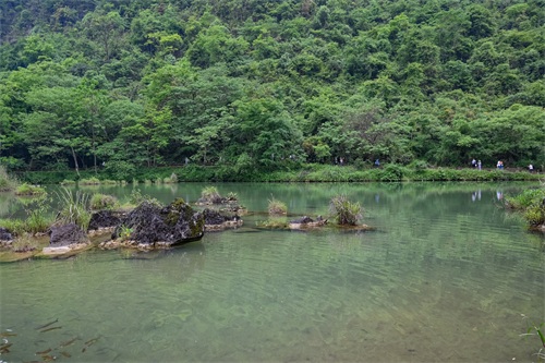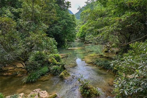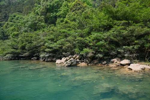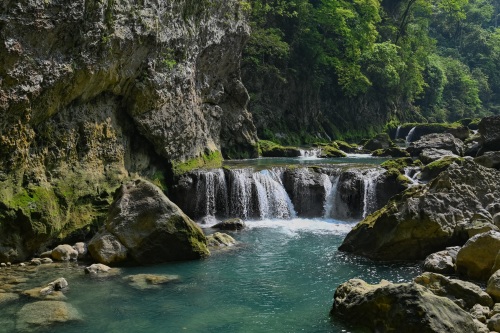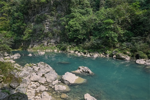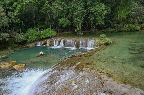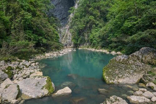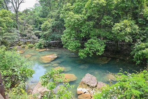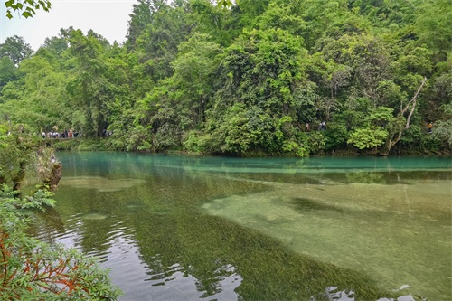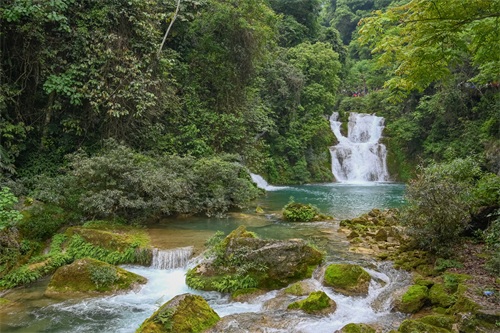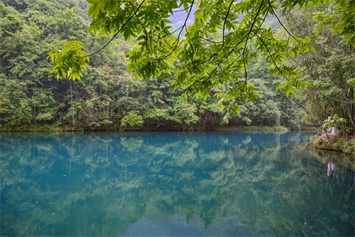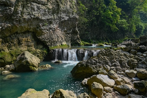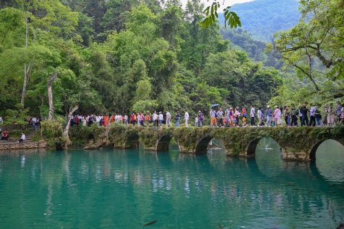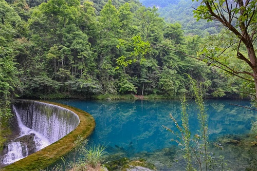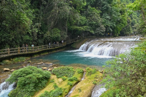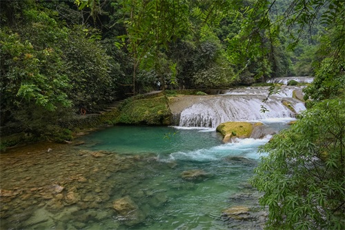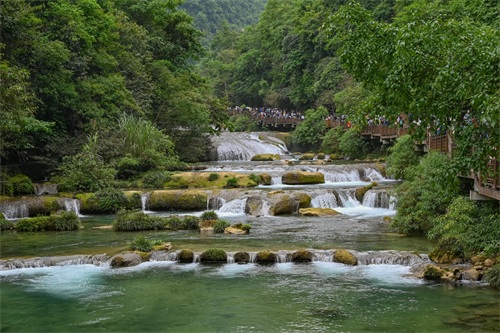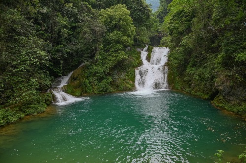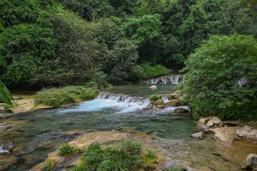 第二天清晨来到小七孔景区售票中心,买了门票后再乘坐景区摆渡车来到卧龙潭,开始沿着各景点进行游玩。贵州的山水之美在这个景区得到了充分体现,翠绿的山林,清澈的流水,幽蓝的水潭,密集的瀑布,呈现出一幅秀丽的山水图画。小七孔景区全程用时约5个小时,从东门出去后可前往大七孔景区。