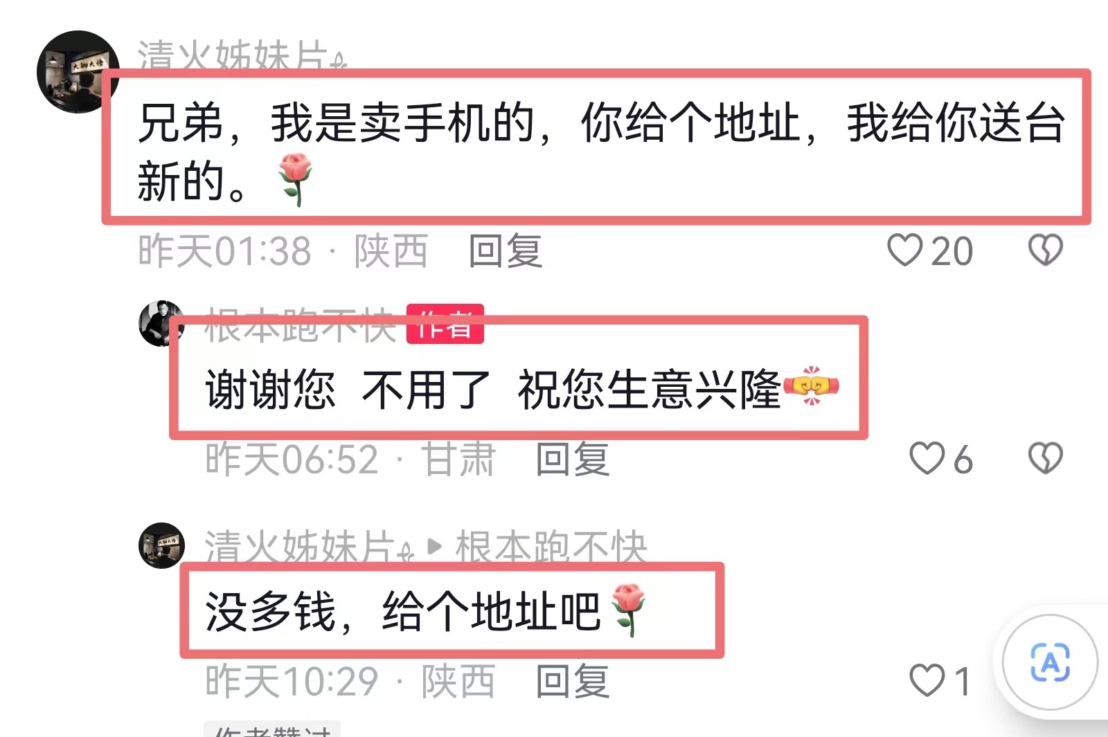 下面还有好多网友跟帖说要给作者众筹买手机,看得出来,作者、修手机老板还有网友们都很善良,网友们人好心善,作者不求回报。