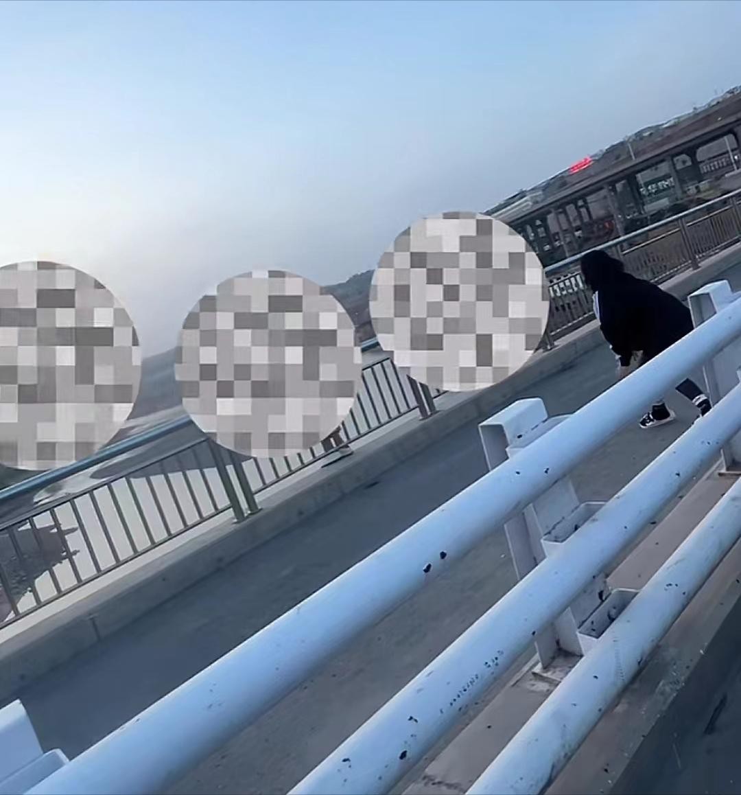 4月15日,甘肃兰州一年轻女孩站在大桥上欲轻生,从大桥上看下去应该是个很深的湖,桥面离湖面应该有几十米深,周围没有住户,应该是一条国道或是乡道。