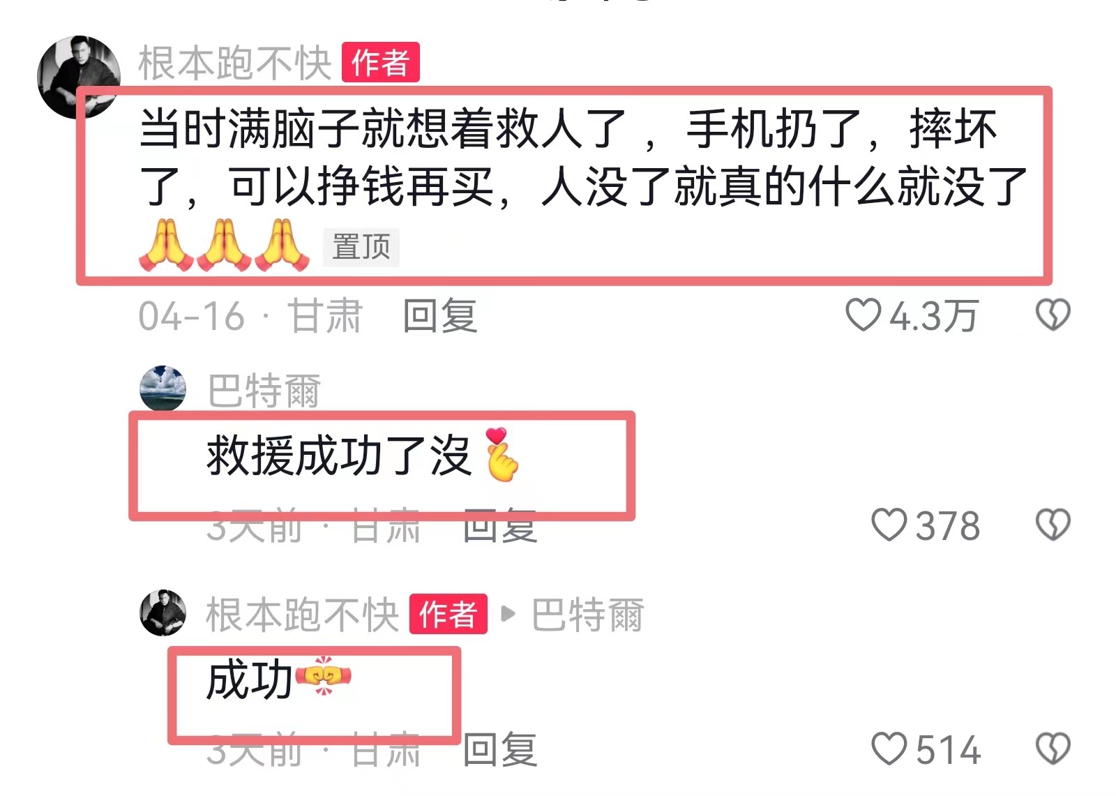 很多网友看见几个年轻人救人,也想起了曾经他们救人的经历,不一样的经历,同样的感受,都是不求回报,只图个心安,希望被救的人好好活着,这可能是所有救人者的心声了吧。