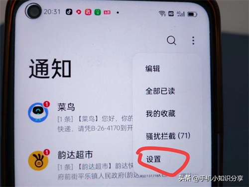 选择通知管理,(如上图所示)