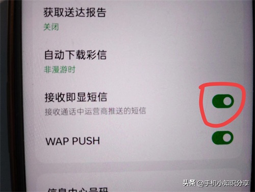在这里能看到接收即显短信这个开关,一定要确保其处于打开状态。若未打开,就无法接收通话中或运营商推送的短信,(如上图所示)