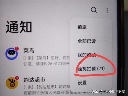 打开后点击这里的三个小点,选择骚扰拦截。(如上图所示)