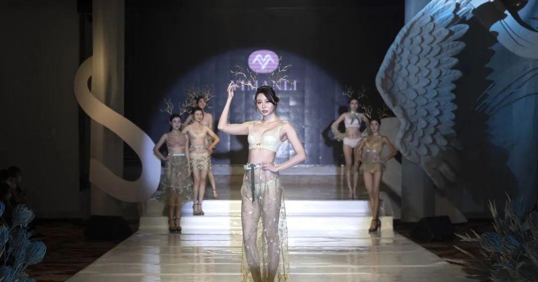 依曼丽作为本次发布会的品牌之一,对2022秋冬新品——沉浸自然 进行走秀展示。新品中主要采用蕾丝和薄纱的设计,尽显女性冰肌玉骨与身材的魅力。出场的模特头戴形似鹿角的树枝发饰,将自然的主题融入到模特的妆造设计当中,配以柔顺的橘色丝绸披肩与裙摆,更加凸显品牌内衣的轻柔绚丽,充分展示了“天然纯粹、自由舒展”之美。浅配色的内衣辅以白金色的薄纱配饰,将女性皎洁的皮肤与柔美的躯干衬托得淋漓尽致。
