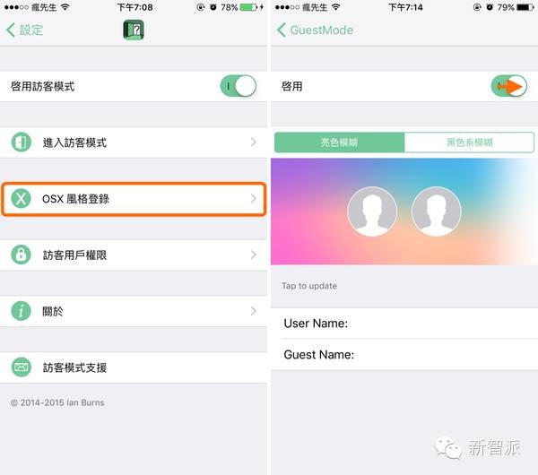GuestMode 一开始安装后,插件预设并没开启,请至【设置>「GuestMode」内将「启用访客模式」开启,开启后一共会有叁种类别功能可以调整,底下就会依序介绍这些功能说明。