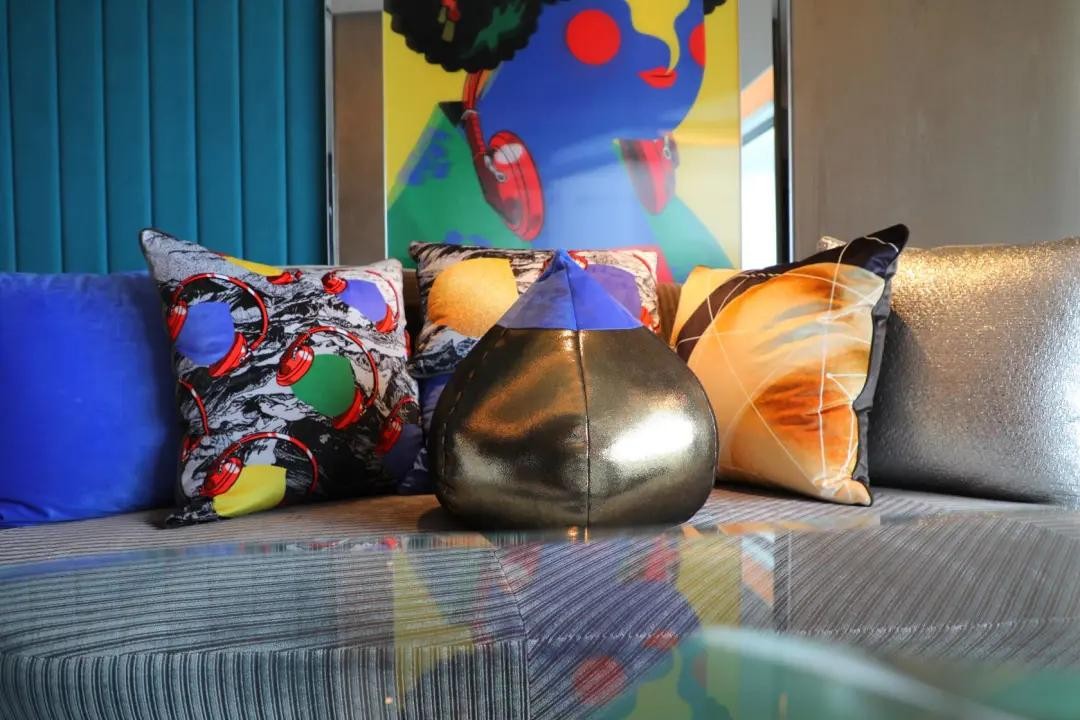 比如,象征不同地域文化的欢迎枕:曼谷W是拳套造型,苏州W是琵琶造型,「西安W」选择金桃造型——元素来源于《撒马尔罕的金桃》,作为西方汉学的名著,被视为西方学者研究中国古代社会文化,尤其是唐朝社会生活和文化交流必读之作。