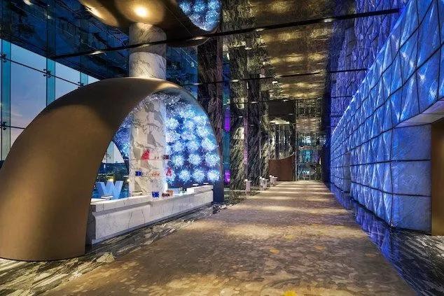 「西安W」诞生历程,从设计到施工、从颜色到材质、从美学到创意……这些,足以写成一本行业教科书。例如,高达17米、亚太地区最高大堂中的巨大艺术灯饰,完全超脱灯具范畴:
