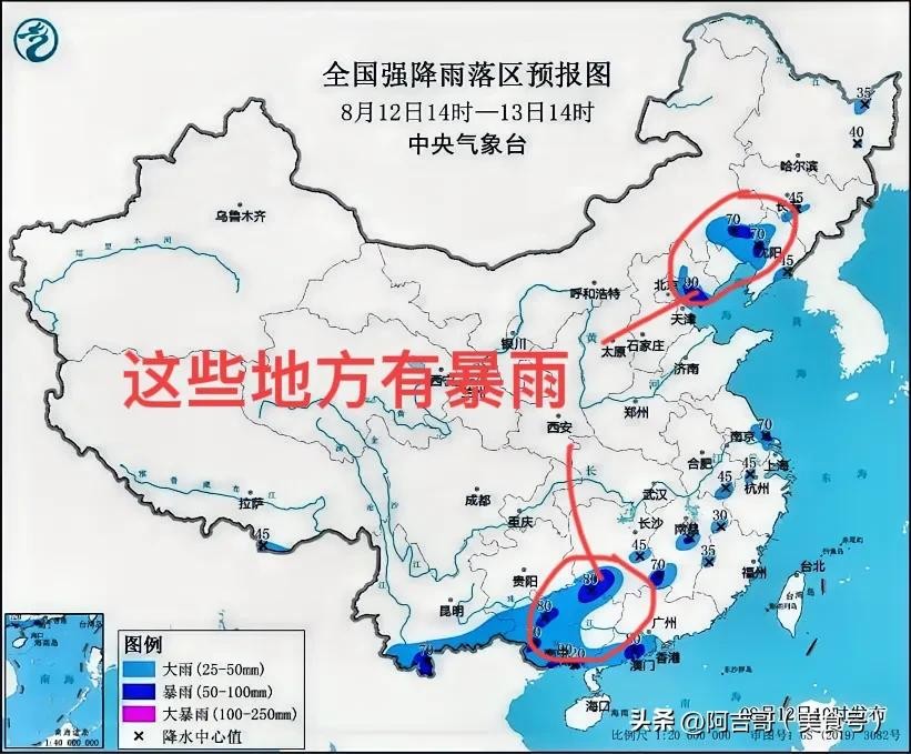 然后,我们再来看看我国中央气象台 8 月 12 日 10 时继续发布的暴雨蓝色预警。预计 8 月 12 日 14 时至 13 日 14 时,众多地区将迎来降雨。