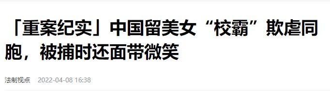 法治观点-2022年4月8日-《中国留美女“校霸”欺虐同胞,被捕时还面带微笑》