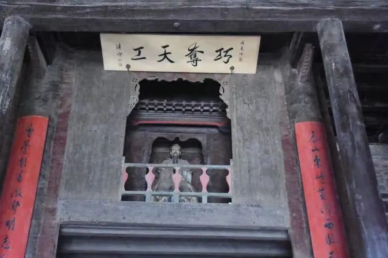 一楼门内北面,在明间檐柱与金柱穿插枋上设着鲁班神龛。龛内有鲁班神像。之所以供奉鲁班,一是因为鲁班是木匠的祖师,光岳楼主楼为木质结构,意为建造技术高超堪称鲁班神工。鲁班龛上,悬挂着“巧夺天工”的木质匾额,白底黑字,为清代最后一个皇帝溥仪之弟溥杰所题。在鲁班神龛左右金柱上,还木刻有原聊城县长孙桐峰撰文,蒋维崧先生重书的楹联一副:“泰山东峙,黄河西临,岳色涛声,凭栏把酒无限好;层台射书,微乡明志,人杰地灵,登楼怀古有余馨”。