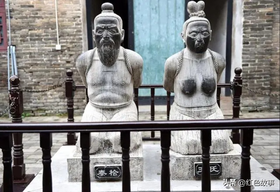 在杭州岳王庙里,有两座铜像跪在那里,他们是奸臣秦桧和妻子王氏。