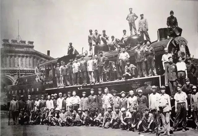 丰台机务段职工在老库前与死车复活活动中被修复的“七一”号机车合影