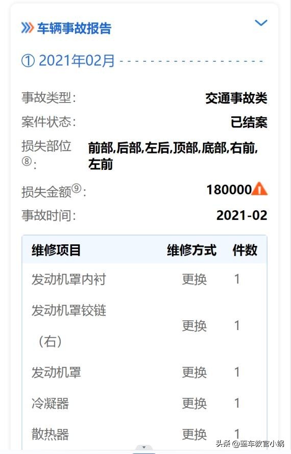 而且购买二手车的时候还可以通过事故记录核实车辆状况,是否有过重大事故,或者存在重损维修等情况。