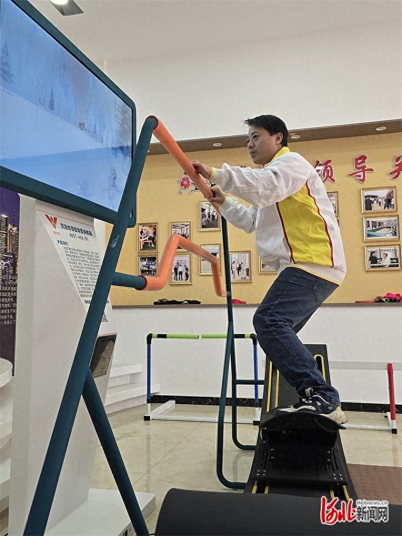 双手把着扶手,双脚操控滑板,大屏幕上模拟出人在U型场地滑雪的场景……2月10日,在河北威尔特体育用品有限公司(以下简称“威尔特”)展厅,技术人员在二代沉浸式智能滑雪训练器上进行操作演示后,董事长杜志红说:“这是我们最新的二代产品,可模拟高山、森林等8种场景,在运动中实现人机互动,并根据运动快慢和协调程度,在4种训练模式中切换。”