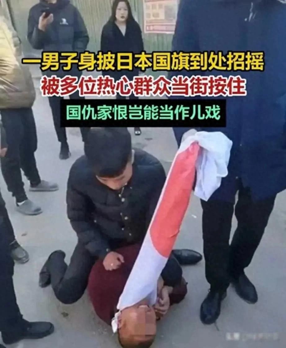 在2024年农历春节将至的时候,河北邯郸一男子身披日本国旗招摇过市,被义愤填膺的正义的民众暴打!
