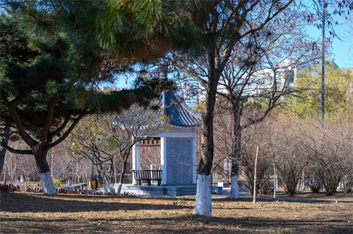 长春德苑毗邻新民大街,这是一条历史悠久的大街,街道上的历史建筑格外多,且大多都保存完好,从公园内就可以看到那高耸的历史建筑。