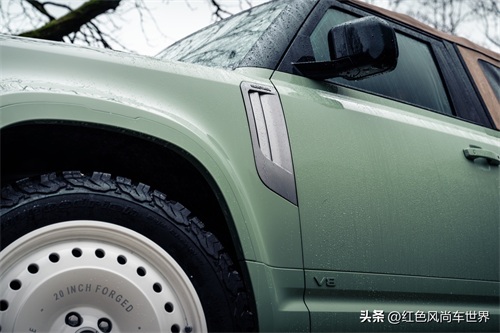 这辆路虎改装版被称为 Valiance (勇猛)敞篷车,它是最酷的卫士,简单明了。它不仅仅是一个经过调校的卫士,而且是一个非常广泛的改装项目。首先,涂有被称为:格拉斯米尔绿色的车身漆,与白色的20英寸轮毂结合起来,看起来很棒。之所以说白色轮毂是因为它们不是普通的钢制轮毂!它们是特别定制的高质量锻造轮毂,但它们看起来像钢制轮毂。