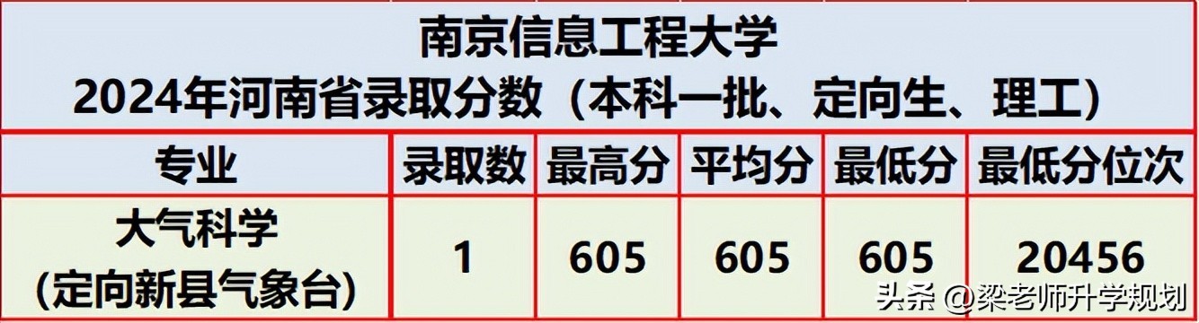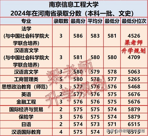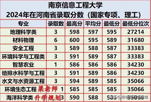 南京信息工程大学2024年在河南省分专业录取分数及2025年报考建议