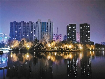 20日凌晨,丰庆公园内灯光点亮,分外美丽。 (记者 王海鹏 摄)