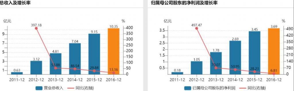 图:2011-2016 年收入及归母净利润情况
