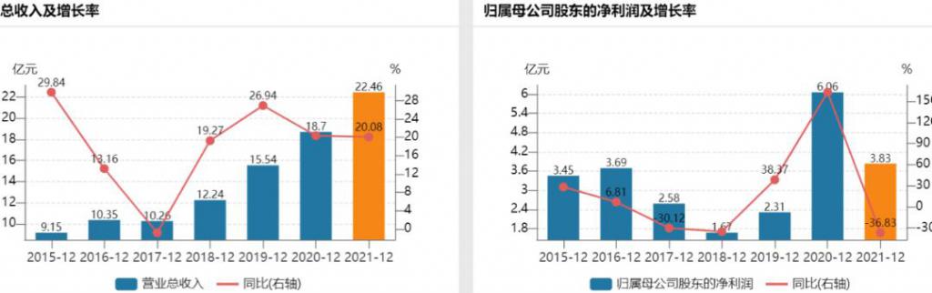 图:2015-2021 年收入和净利润情况图