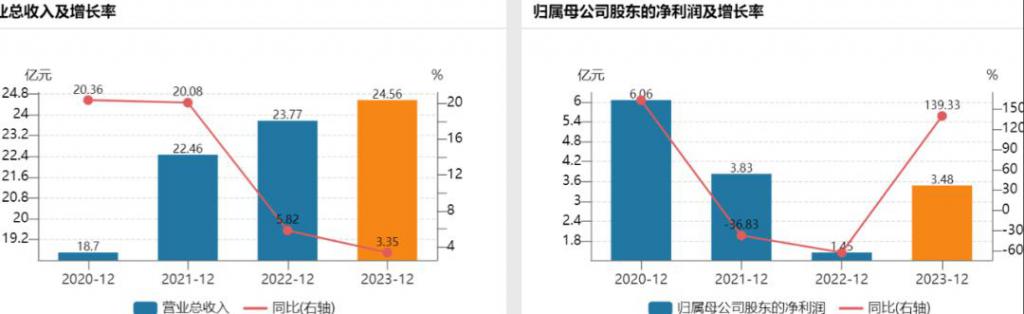 虽然 2021 年 " 埃克替尼 " 再次降价 38%,但是毕竟药品不是消费品,以价换量的边际效应也逐渐递减,2022 年和 2023 年营业收入收获了个位数增长;并且前期布局的花始终也没有 " 绽放 "。